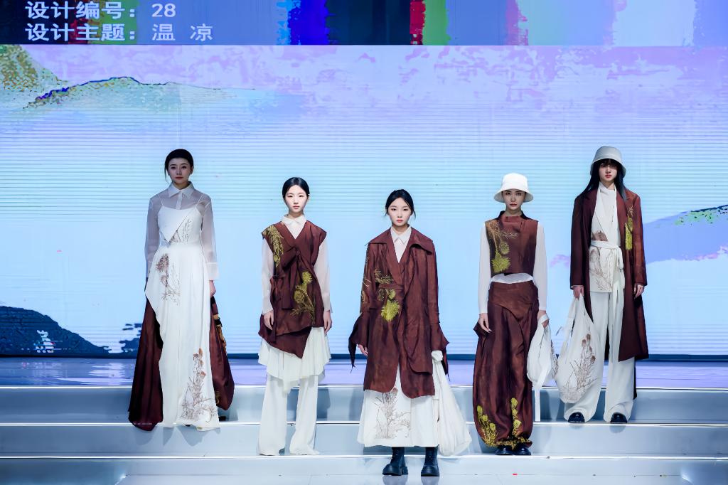 作品《温凉》从设计稿的绘制到初赛入围,再到完成实物作品制作参加决赛,历经三个多月的辛苦准备。作品以服装为载体展现文化性、情感性,将中药材大蓟的图案变形重组装饰于现代款式中。通过对药材大蓟有凉血、调节舒缓淤堵浮躁情绪药理的独特审美,再与服装的刺绣工艺相结合,传递具有文化感的未来时尚。